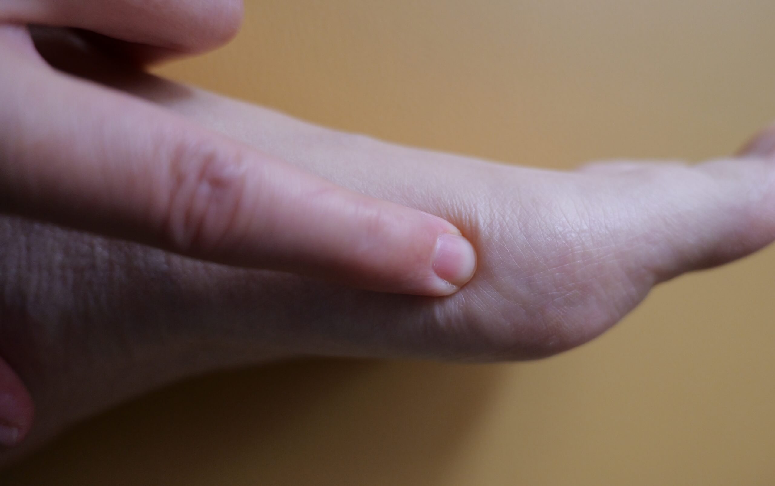- Finger gleitet sanft in eine Kuhle hinter dem Gelenk